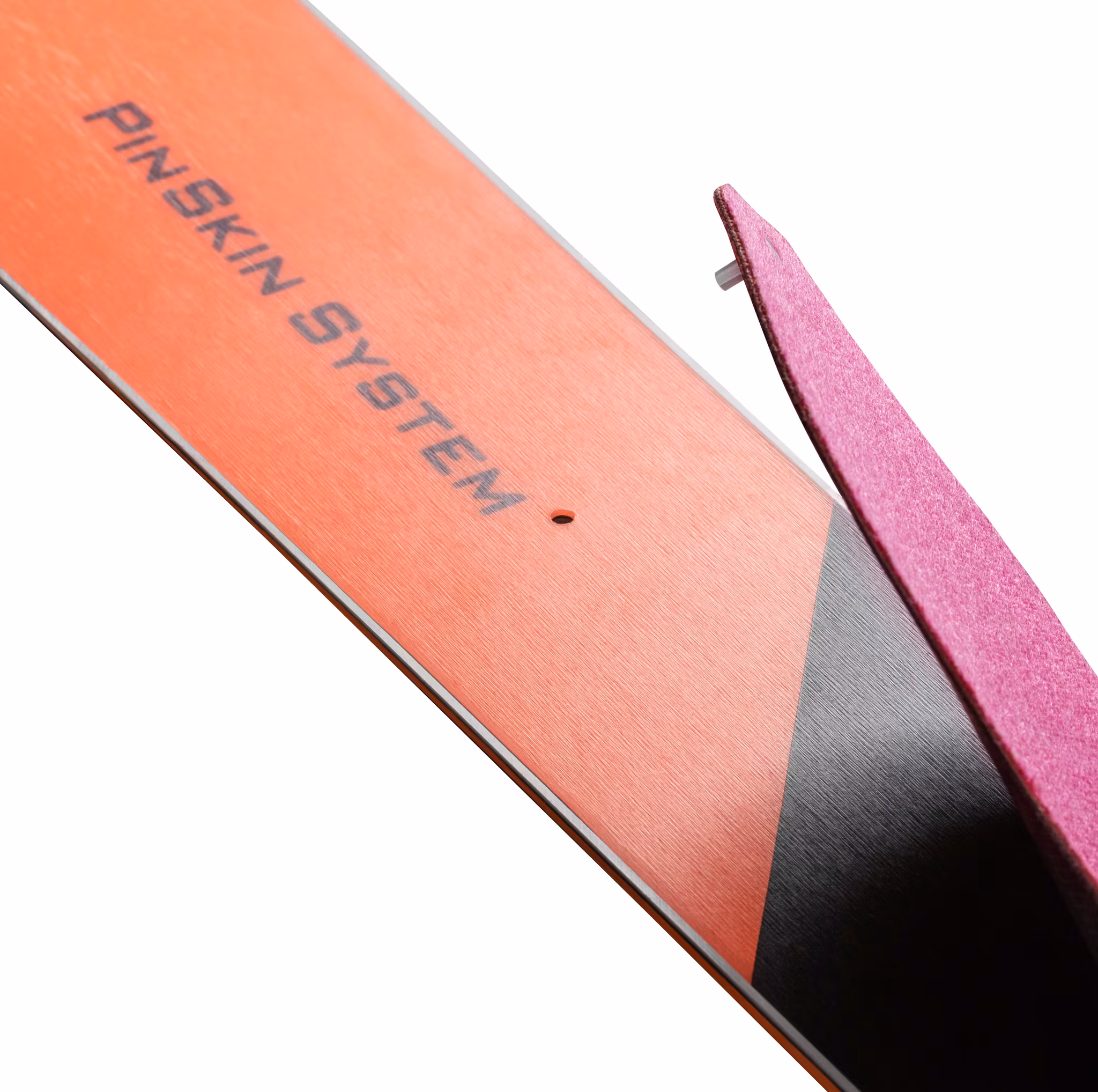 Der Ski ist für ein extrem leichtes Steigfell vorbereitet, das mit Dynafits klassischer Befestigung an der Spitze angebracht, gespannt und mit einem Stift direkt im Ski verankert wird.