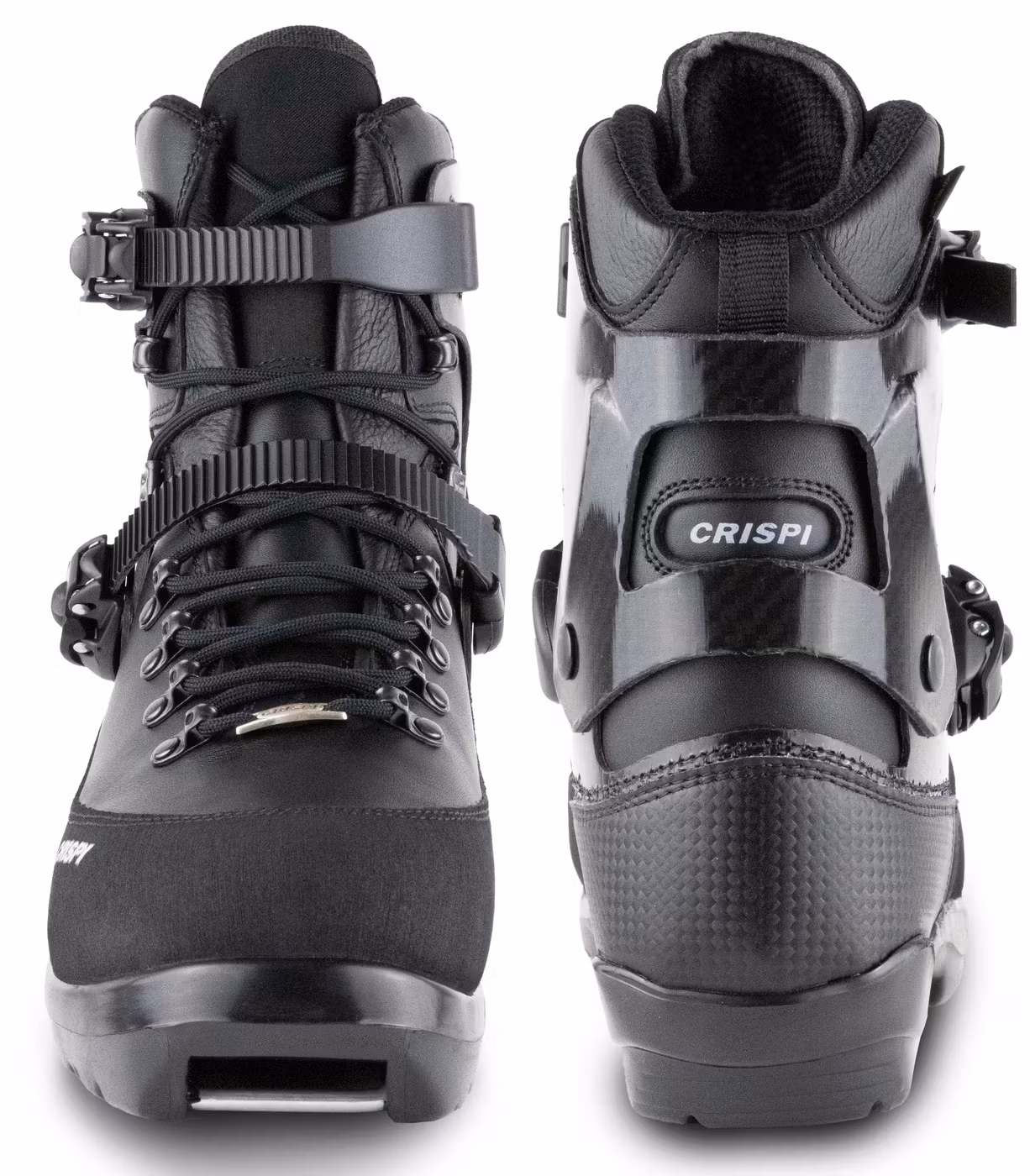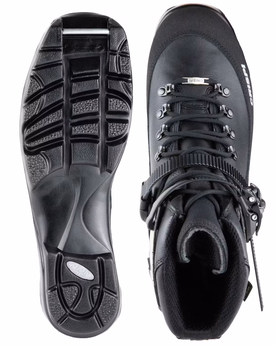 Der Svartisen ist mit CSF (Crispi Skeleton Frame) ausgestattet: Die Stiefel verfügen über zwei Kunststoffschnallen und Knöchelstützen für eine präzise Passform und maximale Kontrolle über Tourenski oder Langlaufski. Das ist besonders gut, wenn die Abfahrten steiler werden.