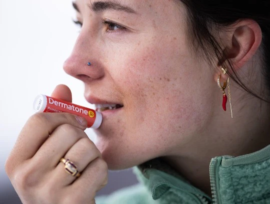 Dermatone Lippenbalsam lässt sich auch bei Kälte mühelos auftragen und hat eine seidige Textur, die sich nie klebrig oder wachsig anfühlt.