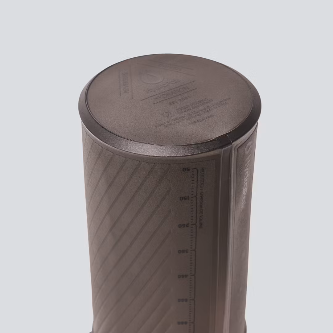 Flux 1 L hat die Form einer Hartflasche, lässt sich aber wie eine Weichflasche komprimieren, wodurch das Gewicht um 50 % reduziert wird. Flux steht aufrecht, wenn Sie es brauchen, aber wenn Sie mit dem Trinken fertig sind, lässt sich die Flasche auf Taschengröße zusammenpacken, sodass Sie sie problemlos auf Ihre Abenteuer mitnehmen können.