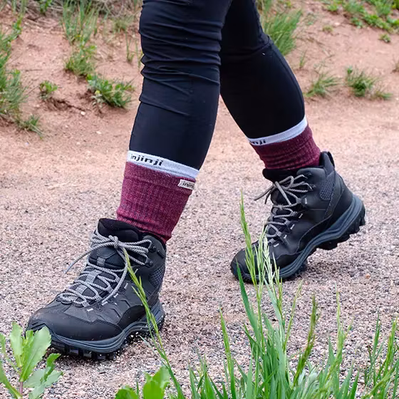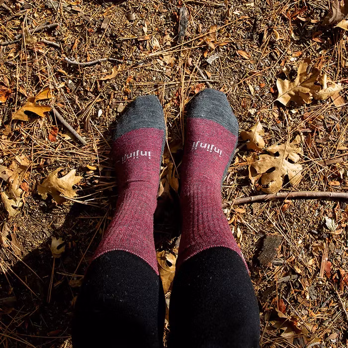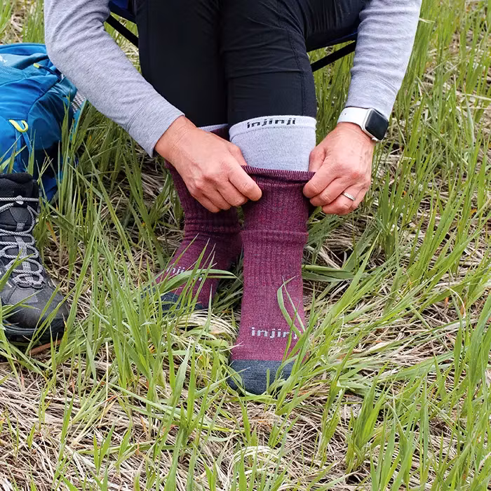 Der Women's Liner + Hiker ist eine perfekte Sockenkombination für jedes Wanderabenteuer – von einer kurzen Tageswanderung bis hin zu einem mehrtägigen Rucksackabenteuer. Der Innenschuh ist eine ultradünne Baselayer-Socke, die den Schweiß vom Fuß wegleitet und ihn so trocken und bequem hält. Da die Zehen getrennt sind, wird die Haut-zu-Haut-Reibung vermieden, was zur Vermeidung von Blasen beiträgt. Der Gehhilfe wird für zusätzliche Polsterung und Schutz über der Leine getragen. Die Wandersocke spiegelt die Form der Zehen wider, sorgt für mehr Platz und reduziert Falten.