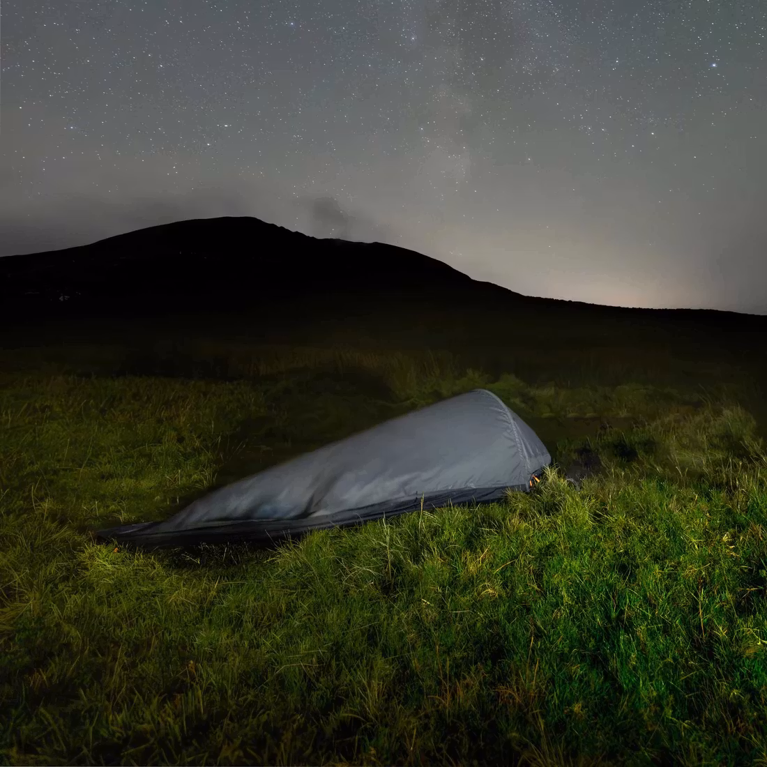 Ein leichtes und großzügig bemessenes Biwak, das einfach zu verwenden ist. Perfekt für Wanderer, Radfahrer oder Outdoor-Minimalisten und bietet ein hervorragendes Maß an Wasserdichtigkeit und Atmungsaktivität.