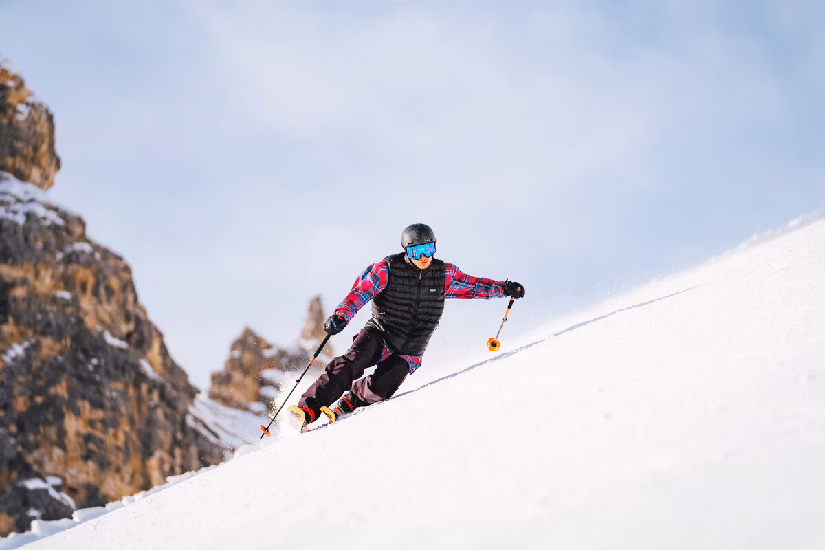 Fußschutz aus Pebax® Rnew. Die überlappende Konstruktion gewährleistet eine perfekte Umschließung des Fußes und maximiert so die Kraftübertragung auf die Ski.
