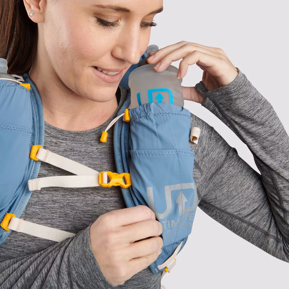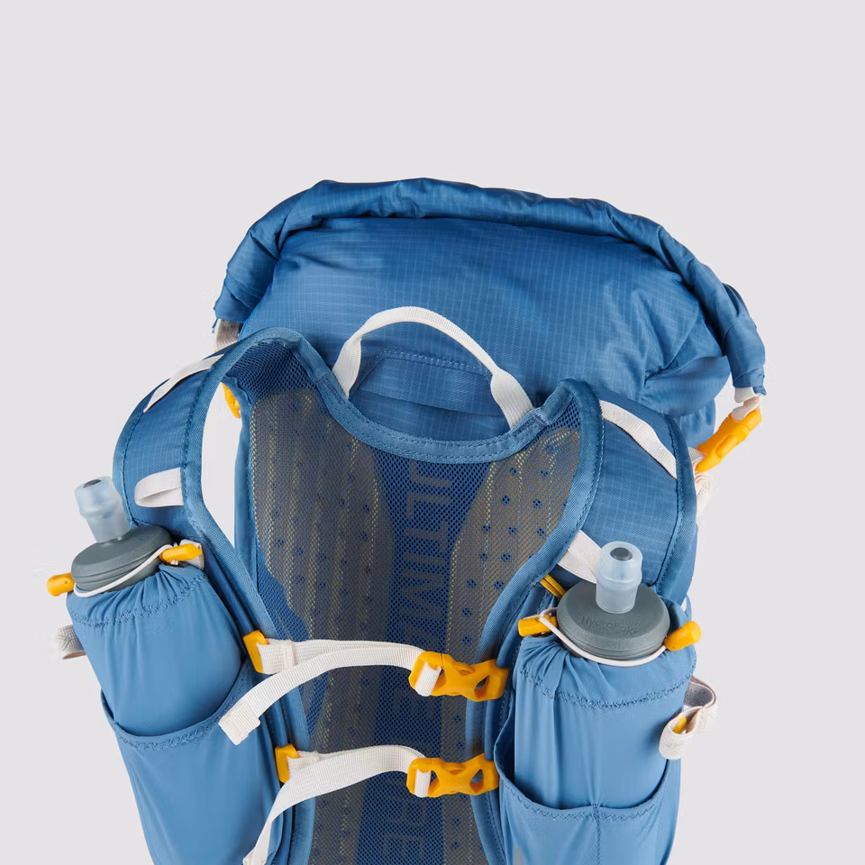 Mit diesem leichten Fastpack können Sie sich schnell im Wald und in den Bergen fortbewegen, und das mit einem robusten Design, das alle Funktionsanforderungen erfüllt. Getreu den Wurzeln von UD sitzt es einzigartig wie eine Weste mit Wasserflaschen vorne, verteilt aber das Gewicht wie ein Rucksack. UD hat ihm ein Upgrade mit Infiknit gegeben? und FastFlow-Technologie zur Erhöhung der Atmungsaktivität und des Feuchtigkeitstransports des Rückenteils. Diese Allround-Tasche verfügt außerdem über ausreichend Stauraum an der Außenseite, eine Rollverschluss-Öffnung und einen durchgehenden Außenreißverschluss an der Seite für einfachen Zugriff auf alles im Inneren.