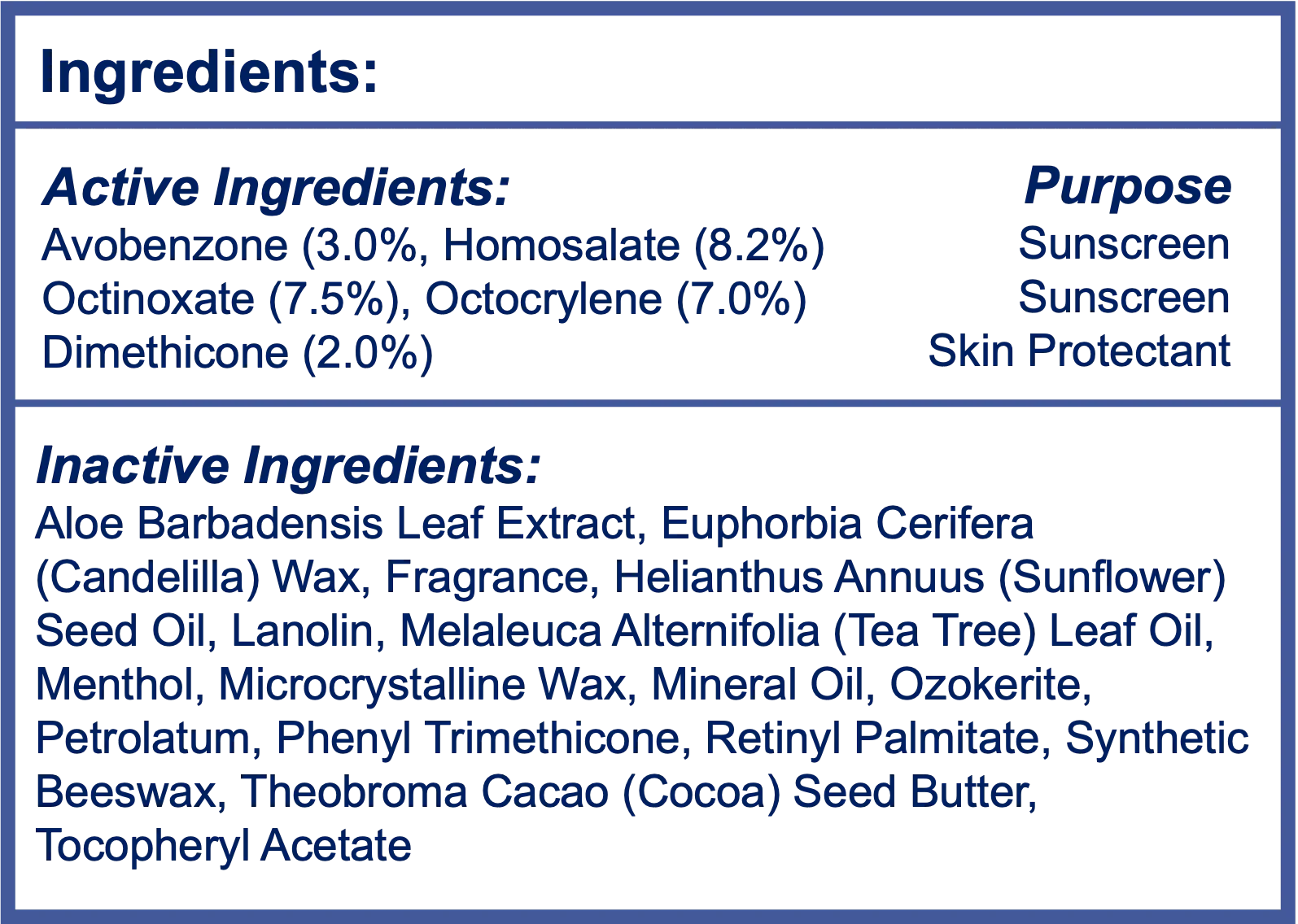 In addition to sun protection, the stick provides nourishment and moisture to dry or damaged skin. Contains: