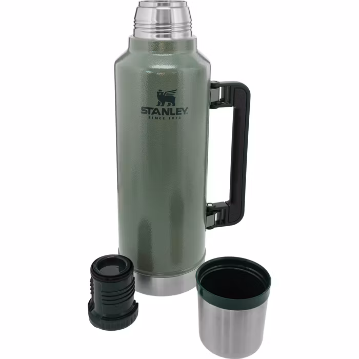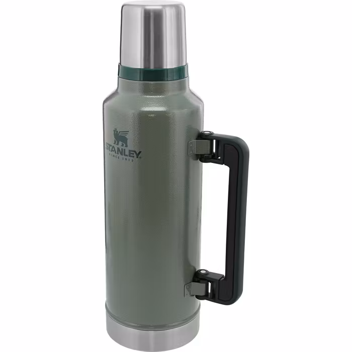 Stanley Classic Vacuum Bottle 2.3L är originalet bland termosar – byggd för att hålla i decennier och leverera varm dryck hela dagen, oavsett om du befinner dig på fjället, i arbetsfordonet, på jakten eller under långa vinterutflykter. Den ikoniska Hammertone Green‑designen kombinerar klassiskt utseende med modern prestanda.