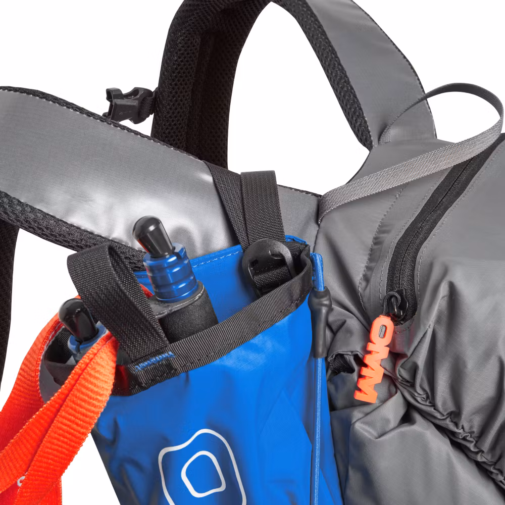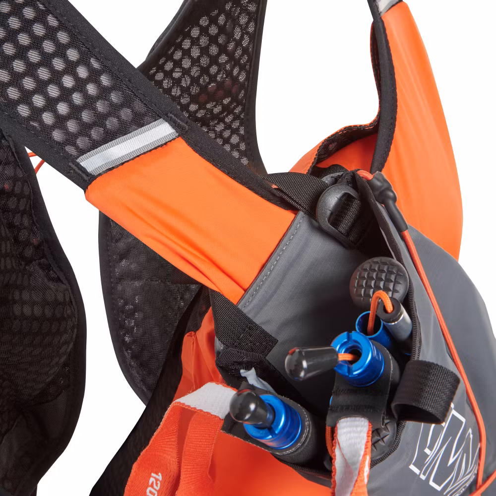 Pole Pod monteras enkelt med den justerbara bandet på toppen, runt axelremmen på din väst eller packning. Podden kan sedan läggas antingen vertikalt längs sidan av packningen eller med en väst med lägre profil, tvärs över kroppen till det motsatta hörnet. Det elastiska kompressionssystemet minskar då studsandet när du springer över vilken terräng som helst.