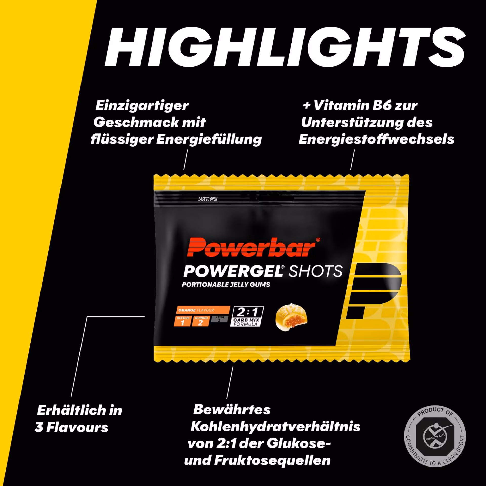 Varför inte anpassa energin individuellt? PowerBar® PowerGel® Shots är ett alternativ till klassiska kolhydratbars och geler. Precis som PowerGels® innehåller de C2MAX, en vetenskapligt utvecklad kombination av kolhydrater med ett förhållande på 2:1 av glukos- och fruktoskällor. Shotsen kan inte bara enkelt och individuellt portioneras, utan de får också plats i vilken ficka eller ryggsäck som helst. Njut av den unika smaken och var redo för alla utmaningar.