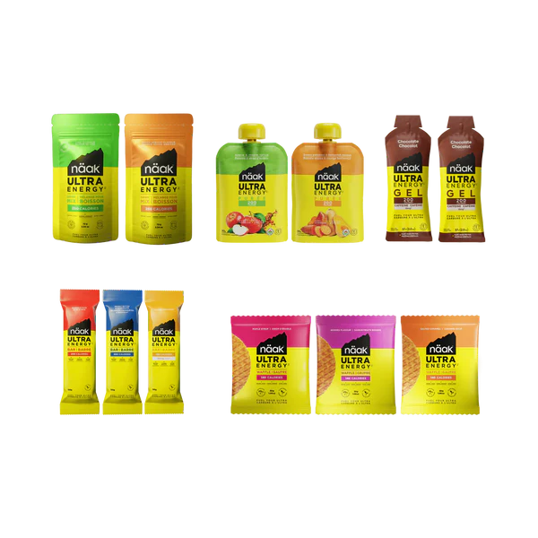 Näak Ultra Energy™ Discovery Pack ger dig allt du behöver för att gå längre och prestera bättre, oavsett om det gäller långpass, ultralopp, graveläventyr eller en heldag i bergen. Paketet är utformat för uthållighet med lågt glykemiskt index som levererar jämn och långvarig energi utan kraftiga energidippar.