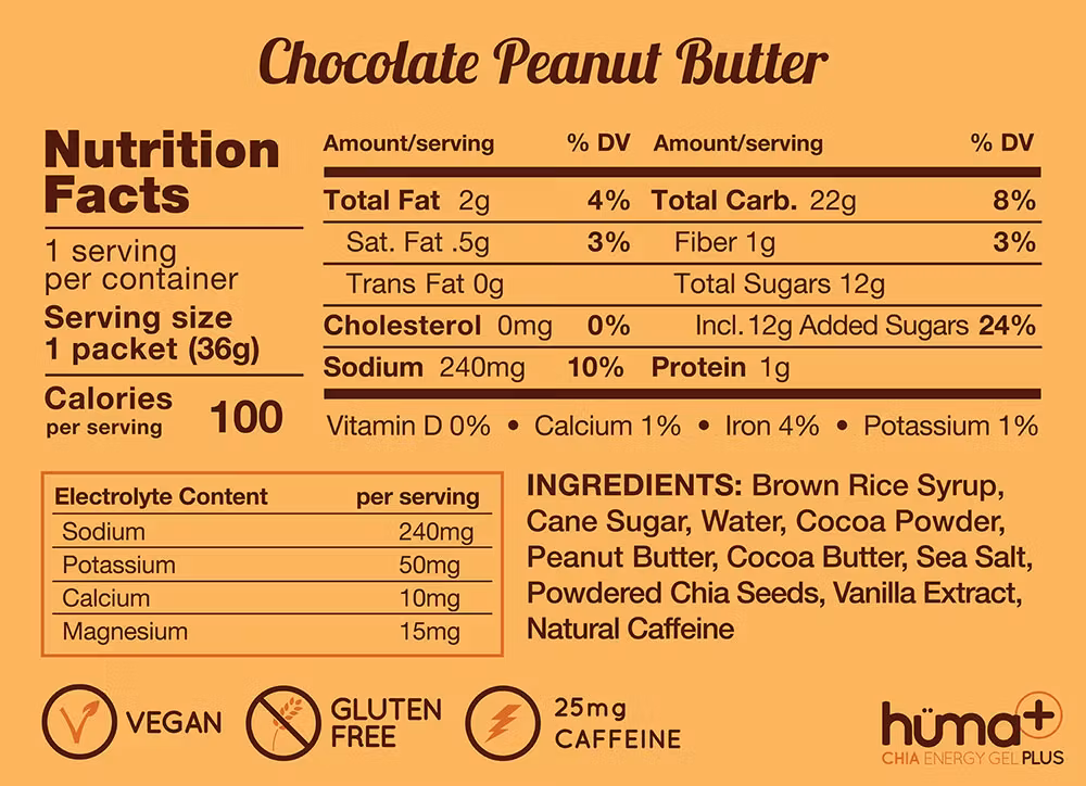 Hüma Gel Plus+ Chocolate Peanut Butter (with caffeine), 44g