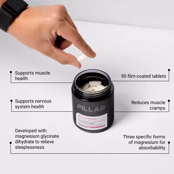Professionell återhämtningTRIPLE MAGNESIUM innehåller tre utvalda former av biotillgängligt magnesium, vilket ger multifunktionellt stöd för neuromuskulär funktion och återhämtning. Magnesium används också för att stödja återhämtningsfasen efter fysisk aktivitet, inklusive muskelvärk, smärtor, kramper och spasmer.
