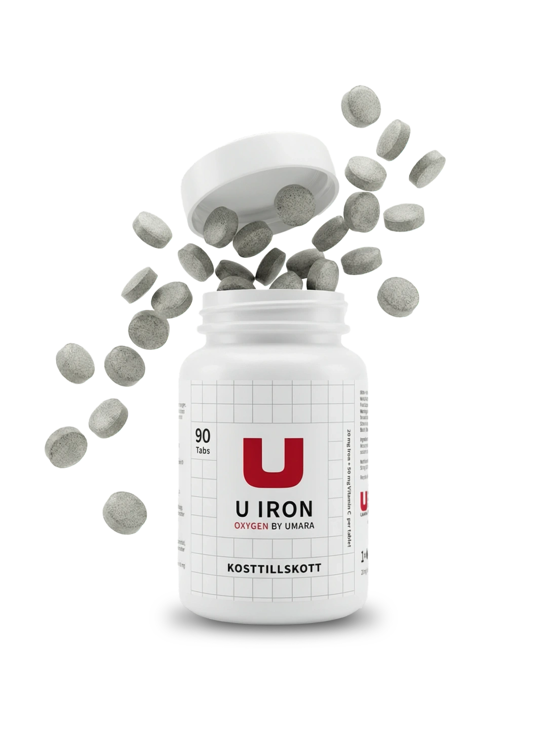 Umara U Iron är ett avancerat och samtidigt skonsamt järntillskott för dig som vill höja järnnivåerna utan att drabbas av magbesvär. Varje tablett innehåller 20 mg elementärt järn i form av järnbisglycinat – en kelaterad och organisk järnform känd för sin höga upptagningsförmåga och minimala påverkan på magen.