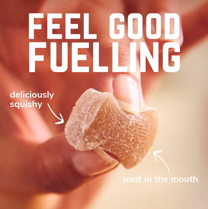 Velofortes banbrytande sortiment av härligt mjuka naturliga Energy Chews är handgjorda med äkta frukt, naturliga elektrolyter och fulla av snabbfrigörande energi när du verkligen behöver den. 4 olika smaker inklusive äpple och kanel, citrus, körsbär och mynta. Prova sortimentet och hitta din favorit!