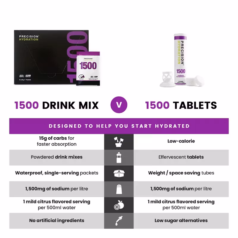 Precision Hydrations elektrolytdryck innehåller inga artificiella ingredienser och finns i olika styrkor för att matcha hur DU svettas. PH 1500 är Precision Hydrations starkaste elektrolytdryck och används vanligtvis av idrottare som strävar efter att börja med att dricka ordentligt och återhämta sig snabbare efter intensiv träning. Den används också under träning av de som svettas mycket.