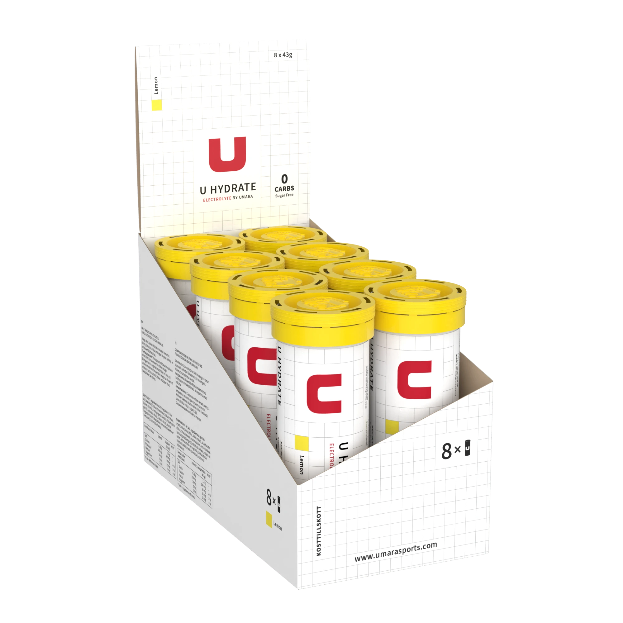 Umara U Hydrate Citron (8×10 st) är ett ekonomiskt storpack med 80 brusande elektrolyttabletter, framtagna för att effektivt ersätta salter och mineraler som förloras via svett vid träning och tävling. Varje tablett innehåller en komplett elektrolytprofil med natrium, kalium, kalcium och magnesium, i proportioner som motsvarar förlusten från cirka 0,5 liter svett.