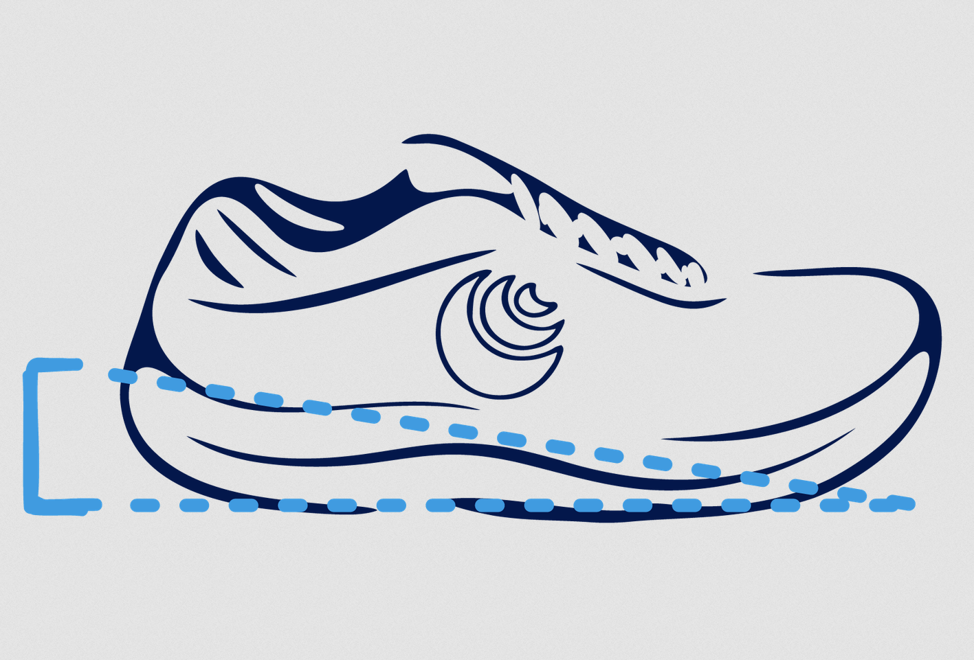 Uppmuntrar ett skott i mitten av foten vid löpning så att du rör dig naturligt genom gångcykeln.