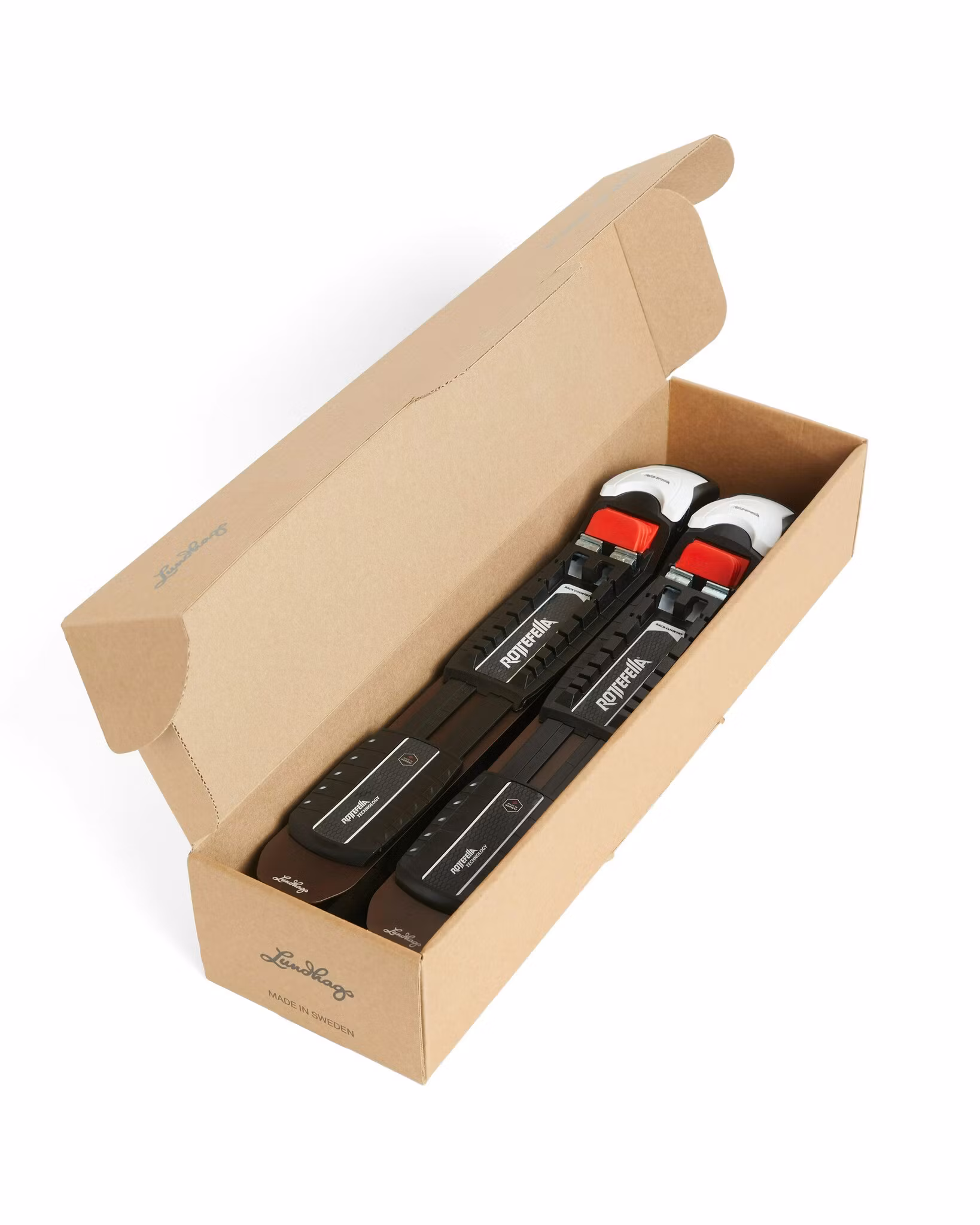 Lundhags Torne BC är en ny, rejäl långfärdsskridsko med en radie på 28 m. Bra isfrigång, en något längre noslängd och radie gör Lundhags Torne BC till en skridsko som presterar bra även på grov is. Levereras med en monterad Rottefella Backcountry-bindning med en extra styv flexor utvecklad speciellt för långfärdsskridskor. Skridskon är slipad och redo att användas direkt ur lådan. Tillverkad i Sverige av återvunnet svenskt rostfritt stål och aluminium med lågt koldioxidavtryck. 100 % återvinningsbar. Omdesignad, solid konstruktion. Bladet i rostfritt stål är fäst vid aluminiumprofilen med hjälp av både presspassning och stansning. Den något längre nosen och den 28 m långa skridskoradien tar dig bekvämt även genom de tuffa delarna av din dagstur. Finns i två längder, 41 cm (pjäxstorlek 36-40) och 44 cm (stövelstorlek 41-45). Varje storlek är utformad för att placera din fot korrekt i förhållande till skenan för en enkel skridskoupplevelse. 1,4 mm bladbredd är perfekt för naturliga isförhållanden i Skandinavien.