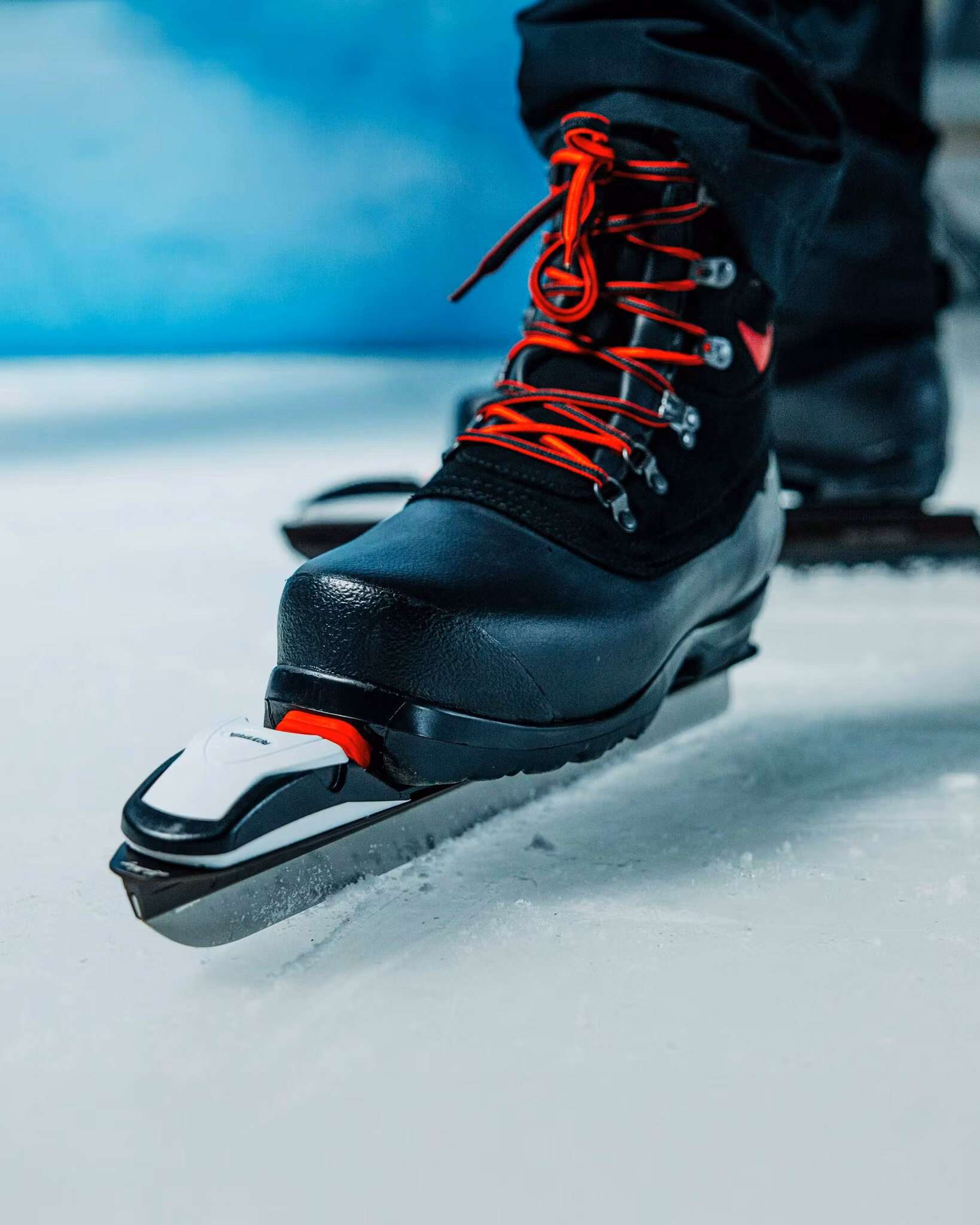 Nosen som sticker ut framför bindningen är minimerad för att möjliggöra effektiv skridskoåkning och underlätta översteg.