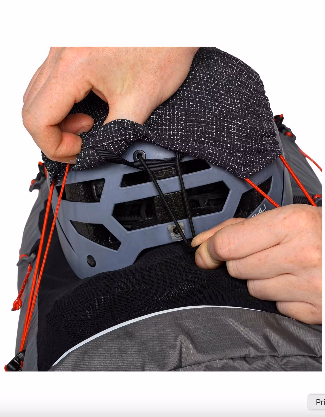 Detta extremt praktiska tillbehör innebär att du kan använda samma ryggsäck både sommar och vinter: det finns ingen anledning att köpa en till för att kunna fästa din hjälm! Med detta lilla förstärkta nät att fästa på din ryggsäck kan du fästa fin hjälm på vägen upp, utan att den hänger och slår.