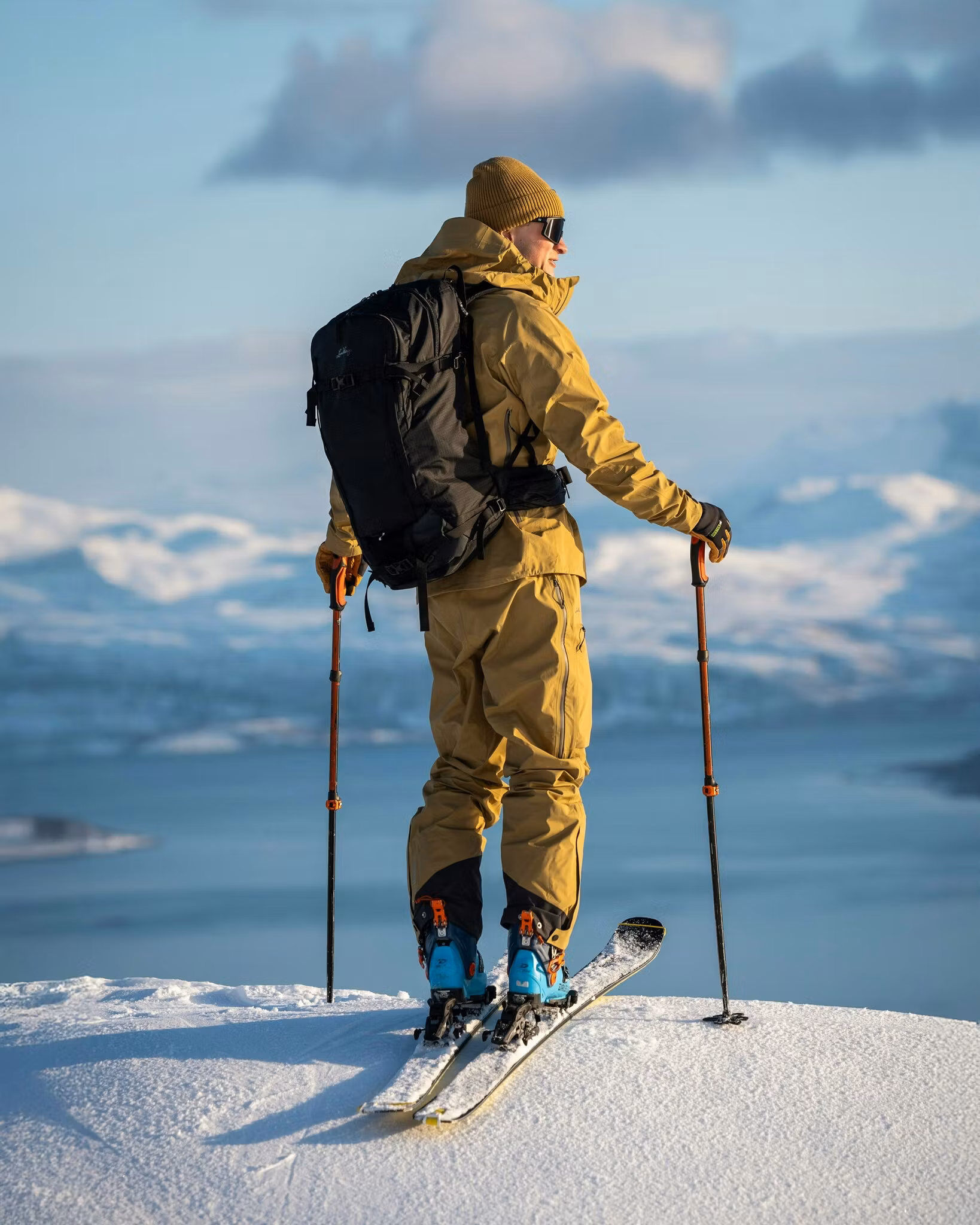 Abisku Touring är ett utmärkt val för dig som rör dig i alpina miljöer. Det slitstarka materialet SuperNylon™ är utvecklat för att tåla tuffa förhållanden i bergen, medan genomtänkta detaljer gör ryggsäcken mångsidig för både topptur, klättring och alpina äventyr året runt. Skidor, snowboard och klätterutrustning kan fästas på flera sätt, och det välutvecklade bärsystemet ger god komfort – särskilt viktigt vid längre turer. Ryggsäcken ger smidig åtkomst via både topp- och ryggpanel och flera praktiska fickor gör att du snabbt når din utrustning. Hjälmfäste, fästen för isyxor och extrautrustning förstärker funktionaliteten ytterligare. Abisku Touring är byggd för att prestera – oavsett säsong och aktivitet.