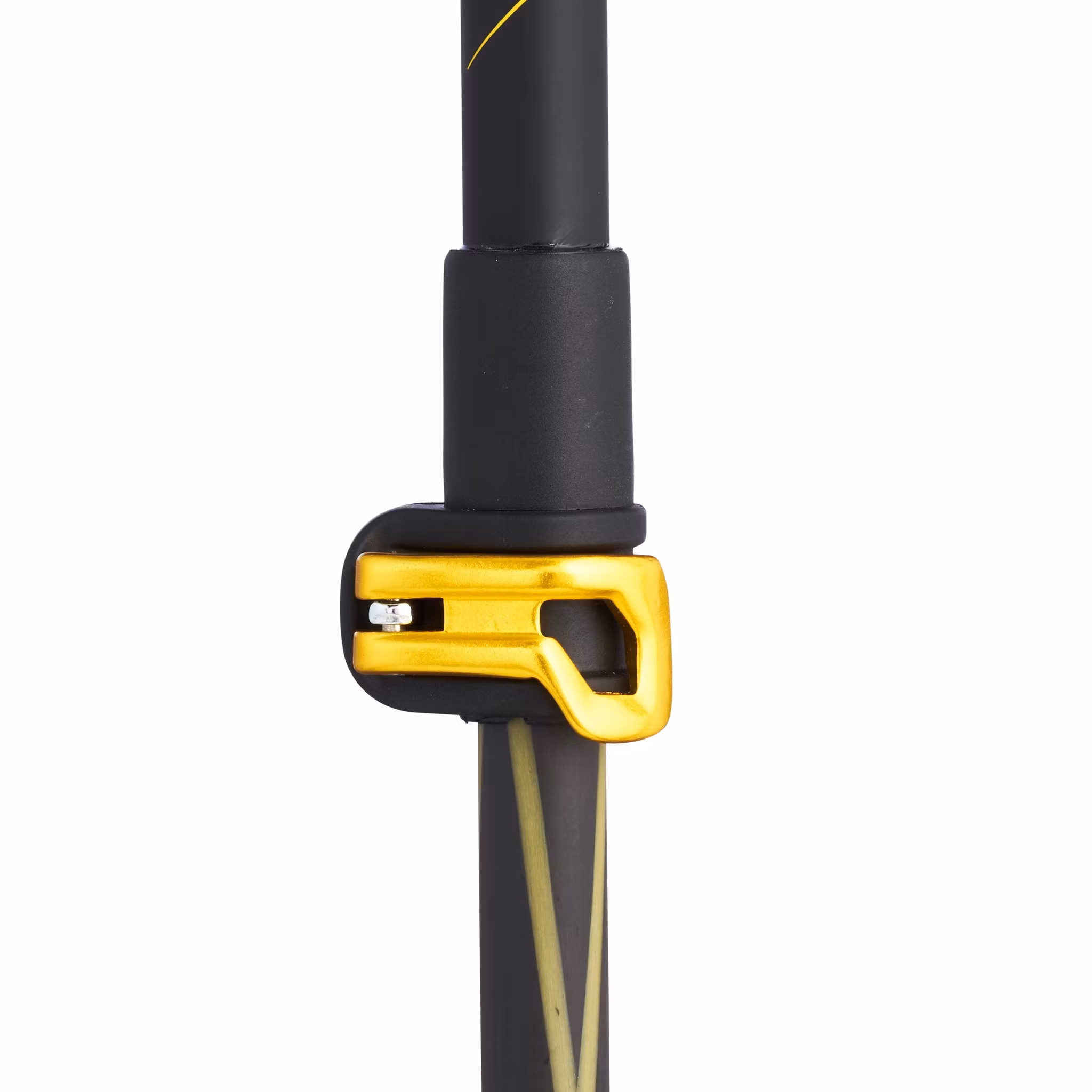 Den perfekta staven för aktiva toppturentusiaster, en stav med mycket bra pendel och en lätt konstruktion i kolfiber och kevlar. Staven har ett övre rör av kolfiber och ett nedre rör konstruerade i kolfiber och kevlar. Kevlartrådarna som snurras runt det nedre röret ökar styrkan och gör den mer motståndskraftig mot stötar och påfrestningar. Staven har en bred topp som ger ett bra underlag och stöd vid kick-turs, den är utrustad med ett rejält Flick-Lock som säkerställer ett bra fäste och snabbt längdbyte av stången. Staven har även en nyutvecklad remskiva med hullingar för justering av fullt lyft.