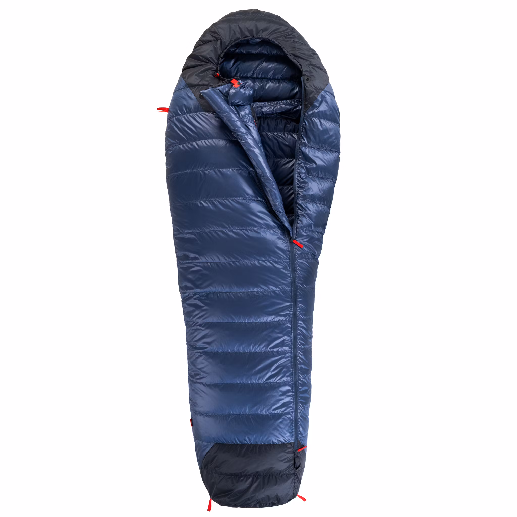 Fyllningen är placerad i Z-formade bafflar som stabiliserar dunet och förhindrar att kalla fläckar bildas – oavsett hur många gånger du har packat eller packat upp din sovsäck.
