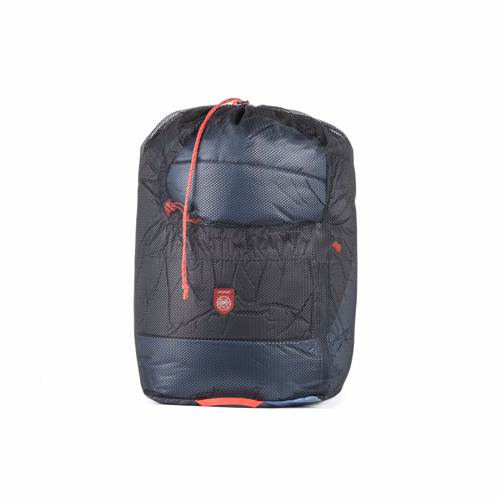 Setet innehåller två förvaringssäckar – en kompressionssäck för att packa i din ryggsäck och en i nät för förvaring mellan turer.
