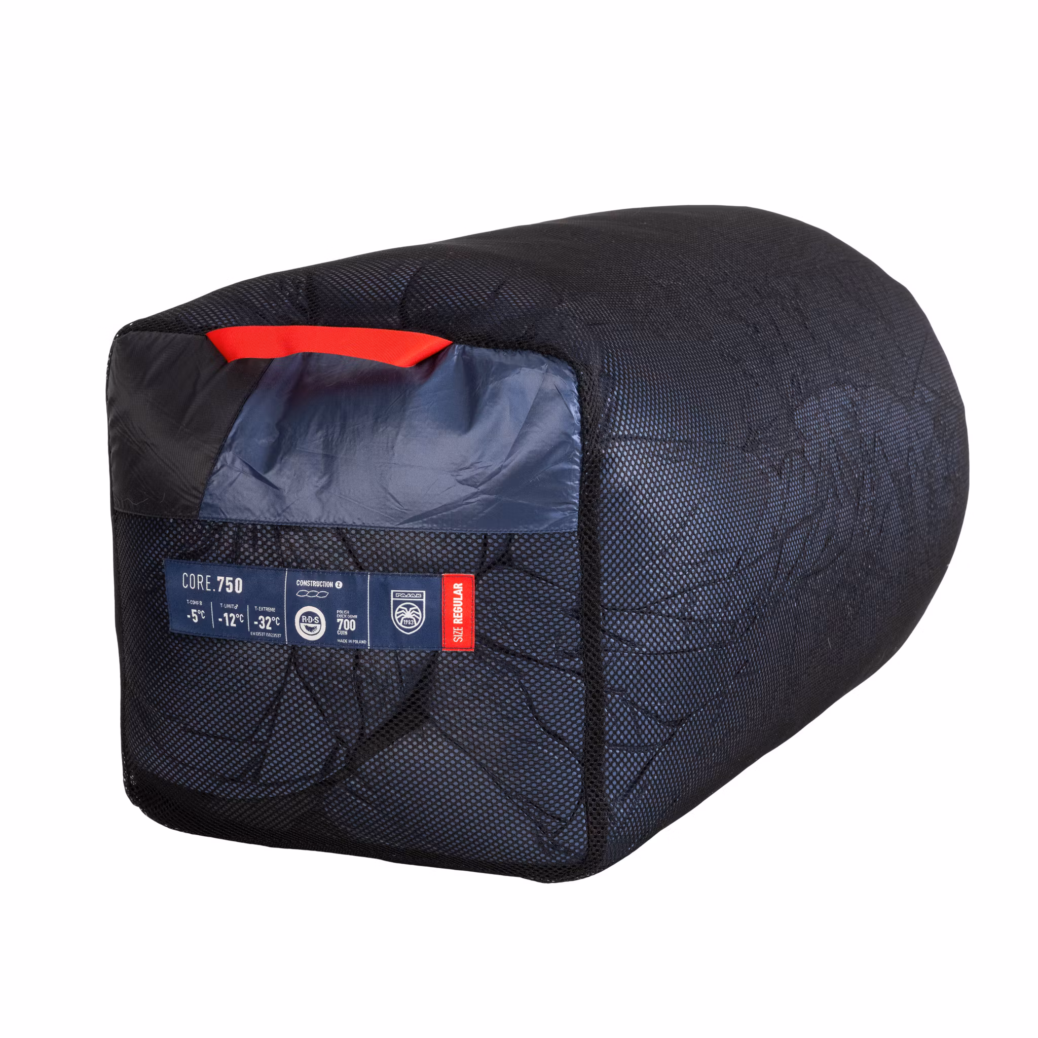 Core 750 är fylld med 880 gram polskt ankdun med en fyllnadskraft på 700 CUIN – lätt, slitstarkt och pålitligt. Den svävar upp direkt när den packas upp och bildar ett fluffigt och varmt isolerande lager.