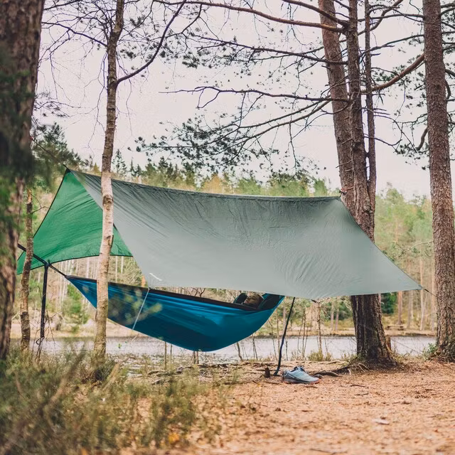 Oavsett om du behöver skydd från ett plötsligt regn eller tak över huvudet medan du sover är Tarp rätt plats för dig som gillar att bo nära naturen. Tarpen kan även användas som fotavtryck eller extra golv i förtältet.