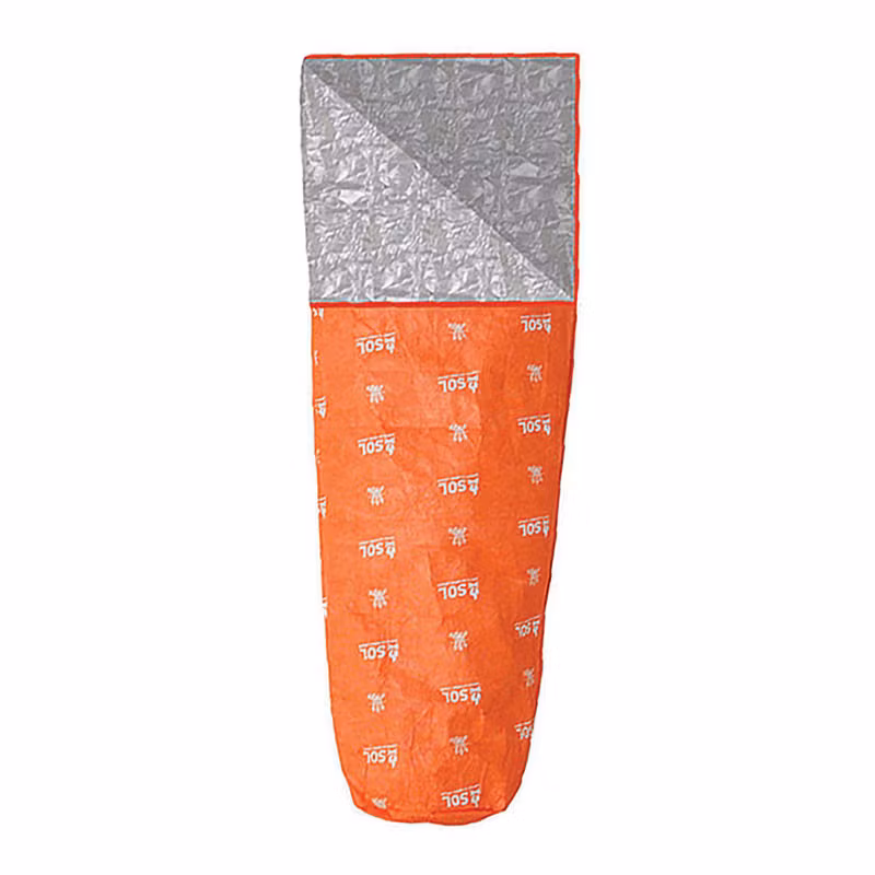 Den reflekterar 70 % av din kroppsvärme för att hålla dig varm hela natten. Vattentäta sömmar, stängning med dragsko i huvan, dragkedja i sidan, samt gott om volym gör att du kan använda denna bekväma bivy-säck som en överväska för din sovsäck för att få 10°C i värme eller som en lätt och bekväm sovsäck ner till 10 °C på sommarnätter. Den orangefärgade exteriören med hög synlighet gör det lätt för räddare att upptäcka dig i en nödsituation, även i områden med mycket skog.
