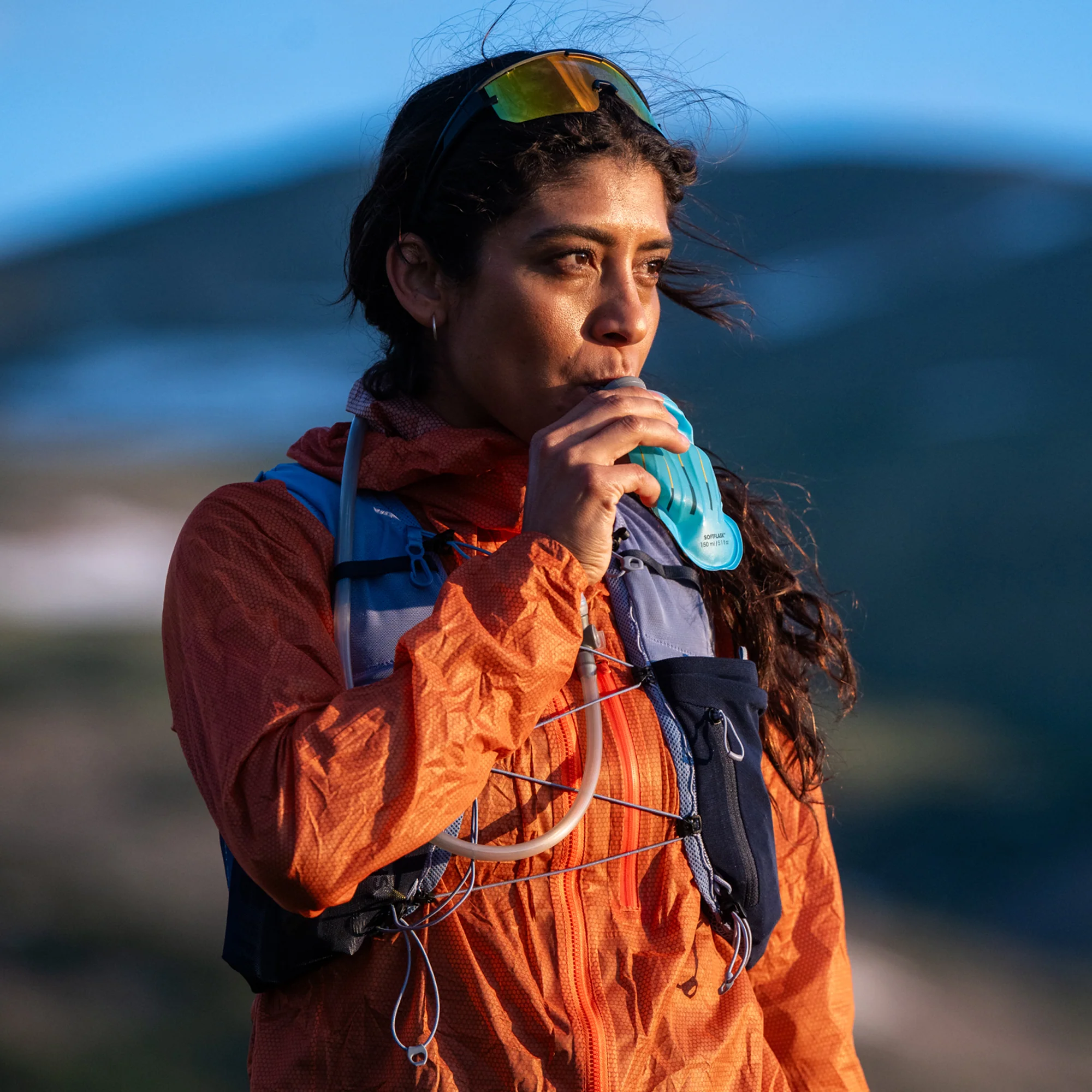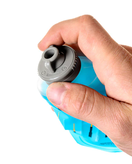 SoftFlask 150 är tillverkad i lätt och slitstark TPU, mjuk nog att klämmas effektivt men tillräckligt robust för intensiv användning. Den är kompakt och hopfällbar, vilket gör att den enkelt glider ner i korta fickor, löparvästar, midjebälten och flytvästar (PFD). När flaskan är tom kan den komprimeras för att ta minimalt med plats.