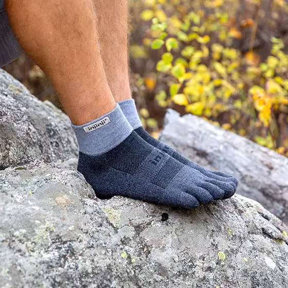 Trail Midweight Mini-Crew tåstrumpan är konstruerad för snabba rörelser i ojämn terräng och erbjuder komfort, skydd och stöd. Den dubbelmanscherade Mini-Crew-höjden tätar ute smuts och skräp, medan COOLMAX® EcoMade-fibrer transporterar bort fukt. Stöd för hålfoten, andningsbart nät och en unik design med fem tår minimerar blåsor, transporterar bort fukt och optimerar den totala fotanvändningen på smala stigar. Gör detta till din favoritterrängstrumpa för träningslöpningar, dagsvandringar och ultrauthållighetsprestationer.
