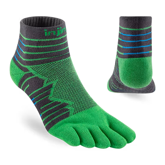 Strumpan är stoppad med extra frotté under hela foten och runt tårna för att mildra effekten på fötterna vid tuffa pass. Ijnjinji's unika fem-tå design gör att varje tå är avskild, vilket eliminerar all hudkontakt mellan tårna och förhindrar blåsor och skavsår. Ultra Run Mini Crew når strax ovanför anklarna.