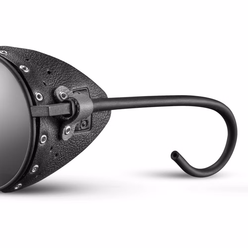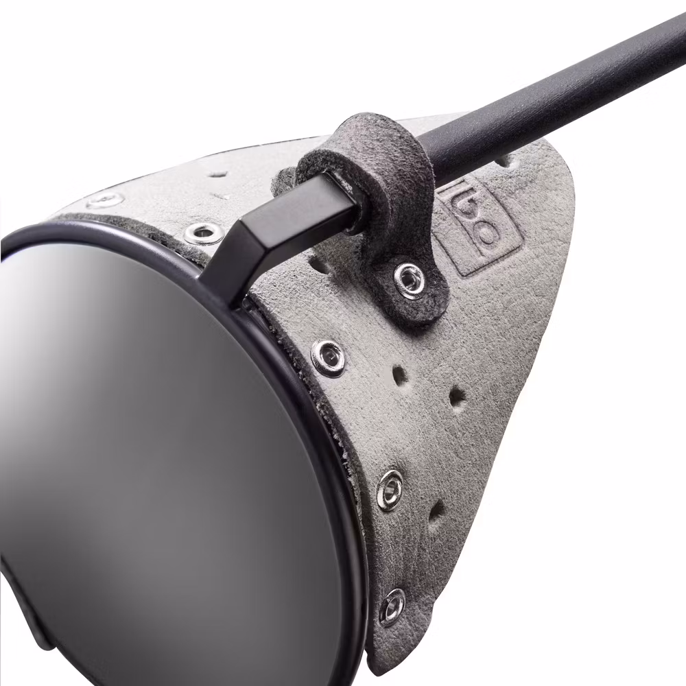Läder sidosköldar: En speciell egenskap hos glaciärsolglasögon, läder sidosköldar har skyddat ögonen hos generationer av bergsbestigare och skapar nu en omisskännlig vintagelook.