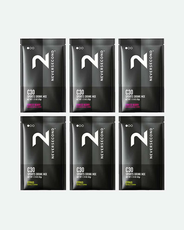Neversecond C30 Sports Drink Variety Pack är den perfekta lösningen för uthållighetsidrottare som vill optimera energiintaget under träning och tävling – och samtidigt testa två av Neverseconds bästa smaker: Citrus och Forest Berry. Varje portion innehåller 30 g kolhydrater i ett vetenskapligt bevisat 2:1‑förhållande mellan glukos och fruktos, vilket maximerar upptaget och möjliggör höga energiintag utan magproblem.