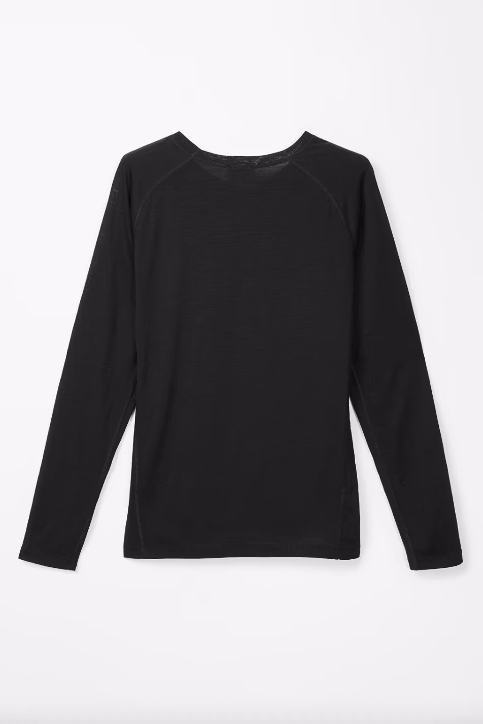 En långärmad, regular fit, otroligt bekväm multisporttröja som är ett utmärkt baslager för vandring eller alpina aktiviteter, eller för löprundor på svalare dagar. Tillverkad i Portugal av 100 % mulesingfri merinoull, den är naturligt temperaturreglerande och fukttransporterande, vilket håller din kropp sval och bekväm när du tränar.