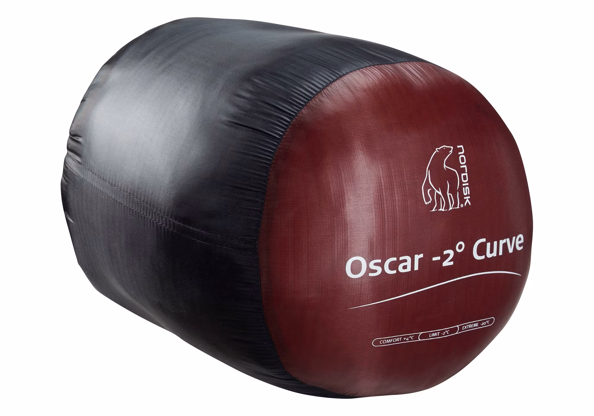 Oscar -2° Curve är en mycket lätt sovsäck med tanke på nivån av termiskt skydd den ger. Den är uppdaterad med kurvformen av Nordisk. Shark-fen-fotbox har också uppdaterats och har nu kuvertventilation för enkel nattlig termisk reglering. Väskan har en extremt mjuk och behaglig känsla tack vare valet av premiummaterial som ultrafin 7D Rip-stop nylon och miljövänlig 100 % återvunnen syntetisk fyllning gjord av återvunna PET-flaskor. Den 3D-formade huvan ger extra värme en kall natt.