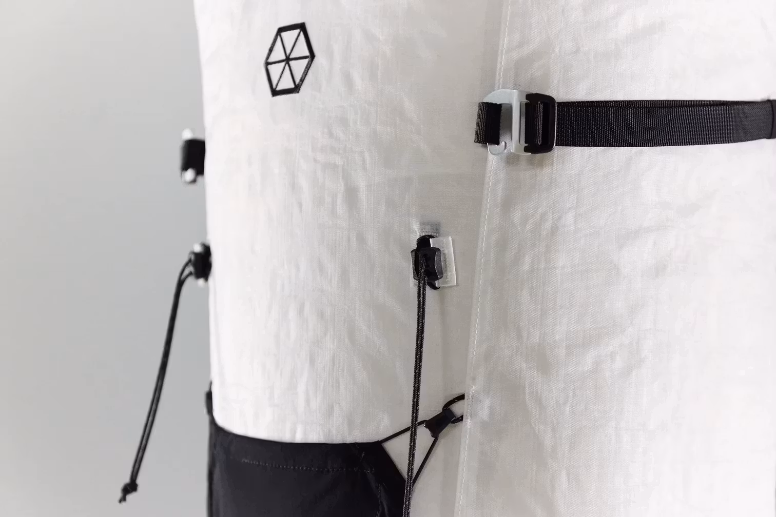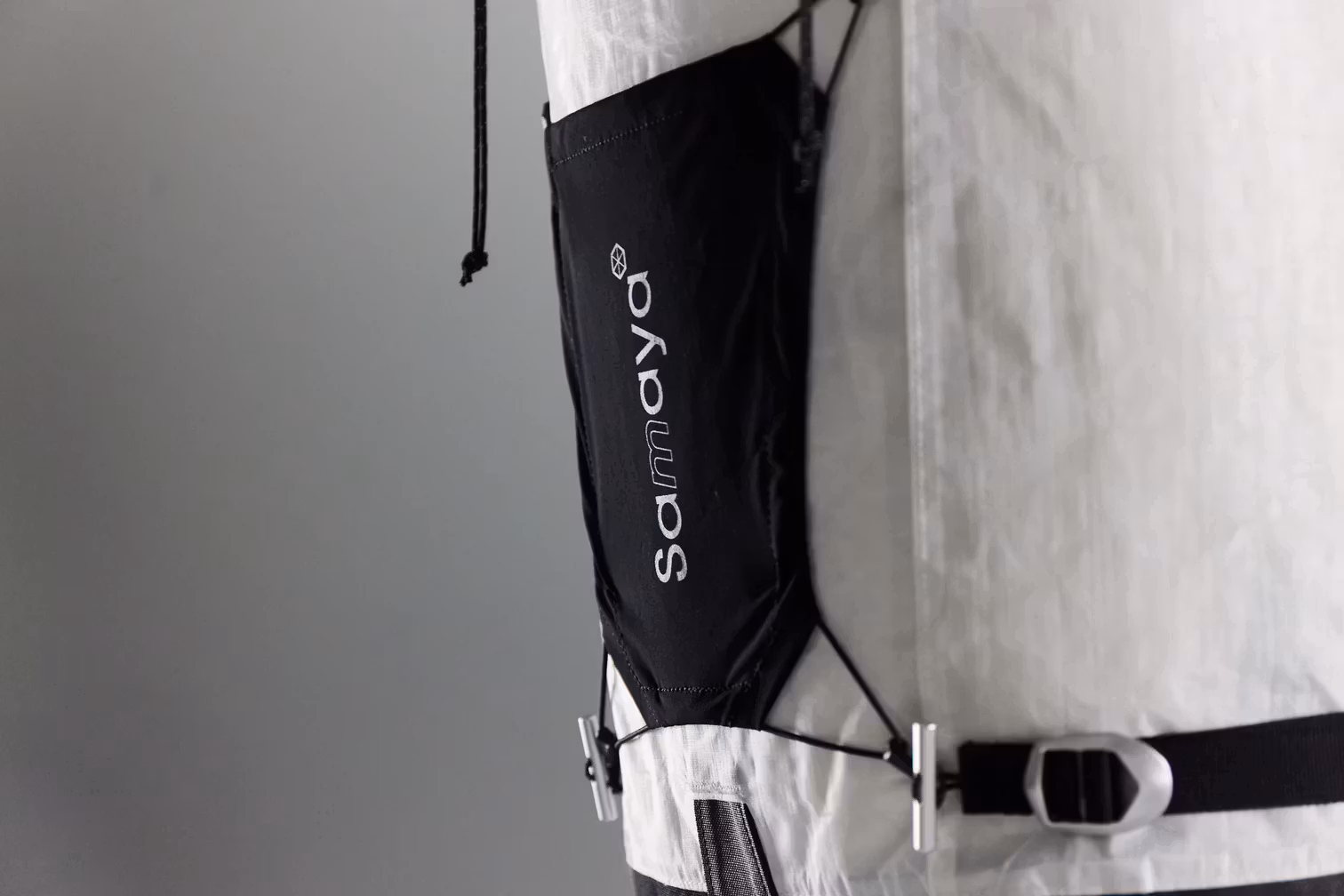 Samaya valde Dyneema® Composite Fabric Hybrid för sin unika kombination av 2 material. På utsidan ger Woven Polyester större nötningsbeständighet än standard Dyneema® Composite Fabric. På insidan garanterar Dyneema® Composite Fabric vattentäthet och mekanisk styrka. Sist men inte minst, styvheten i detta material säkerställer en bättre passform och användarvänlighet, oavsett hur full ryggsäcken är.