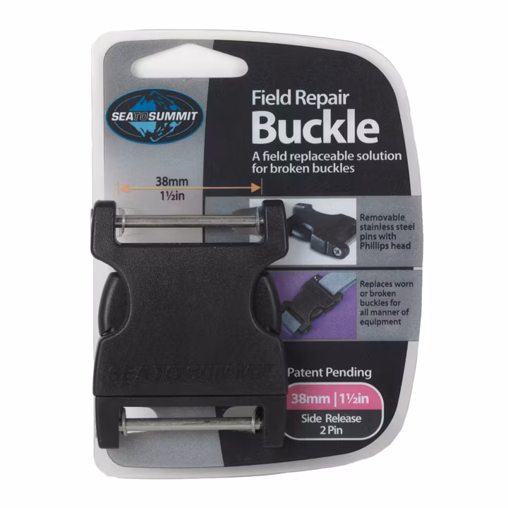 Field Repair Buckles - Reservspännen du enkelt byter själv! Sea to Summit Field Repair Buckles har designats för att kunna sättas på plats med hjälp av en skruvmejsel när du står där med ett trasigt spänne ute på färden. Och till skillnad från de flesta andra utbyteslösningar behöver du inte sy i ersättningsspännen när du är tillbaks från ditt äventyr, våra Field Repair Buckles fungerar även som långtidslösning. Utbytbara spännen med skruvar i rostfritt stål. Field Repair Buckle, Side release med två stålskruvar, 38 mm.