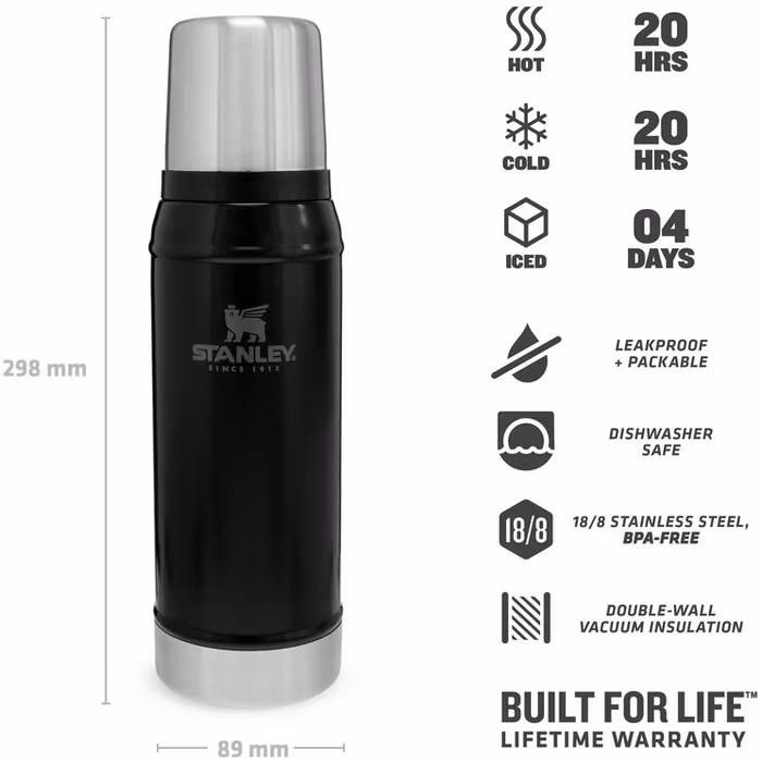 Detta är en gedigen, klassisk termos med praktiskt skruvkork. Termosen rymmer 0,75 liter och är perfekt för resor, skola och arbete. Korken är enkel att skruva på och garanterat läckagefri så att du tryggt kan bära den i väskan. Den medföljande koppen är dubbelisolerad. Termosen håller innehållet varmt eller kallt i 20 timmar. Hela koppen tål maskindisk.