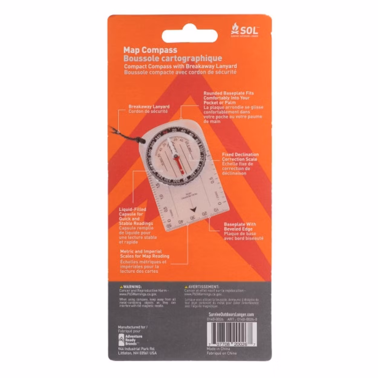 Perfekt för nybörjare och enklare navigering. SOL Map Compass ger exakta och enkla avläsningar. Extrahera exakta kompasslager med den 2” vätskefyllda basen. Den avfasade kanten med metriska och kejserliga skalor är designad för enkel kartläsning.