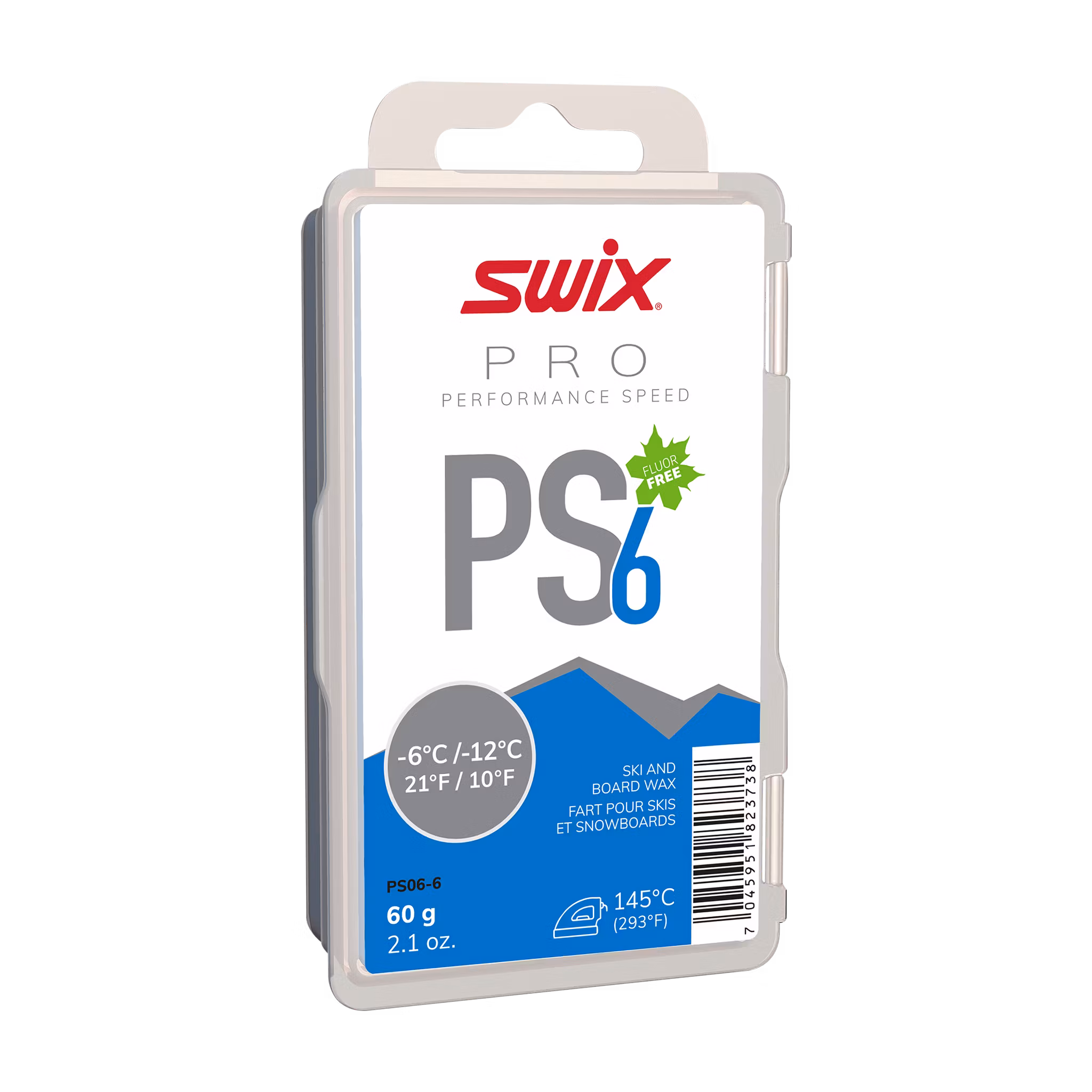 PS6 är en av de mest använda glidvallorna inom längdskidåkning. Den är designad för -6 °C till -12 °C och kan användas som baslager, tävlingsvalla eller valla för skidpreparering. Den är hållbar och pålitlig och ger bra glid på både natur- och konstsnö. Rekommenderad järntemperatur: 145°C.