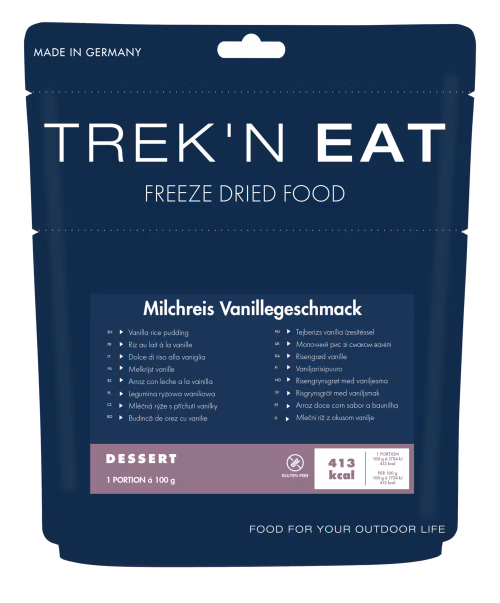 Trek’n Eat Vanilla Rice Pudding är en klassisk och värmande risgrynsgröt med vaniljsmak, perfekt som frukost, dessert eller energipåfyllning under friluftsäventyr. Med enkel tillagning direkt i påsen är den ett smidigt val för vandring, camping, fjällturer och expeditioner.